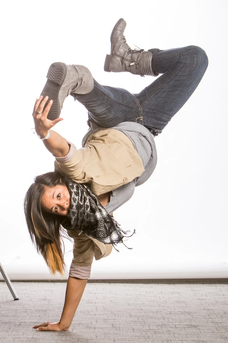 Bernadette Ondevilla began dancing jazz, tap and ballet in Chula Vista High School at the age of 15. Attending UCSD thereafter she became versed in contemporary, dance theatre and contact improvisation, minoring in dance and receiving her BA in Psychology ’09. Bernadette started to teach and create choreography which has been featured through numerous high school conference workshops and notably though UCSD Kaibigang Pilipino’s Cultural Celebrations. Her biggest influence was being a part of Culture Shock San Diego ‘11 where Bernadette delved heavily into hip hop choreography and breakin’. Noteworthy performances include Club Atlantis, Odysseus at the Old Globe, backup for Baby Bash, FUSION ’11, Tiger Bomb Music Video, “Fearless” movie dance extra, and UCSD Winter Works. With a strong immersion and interest in fusion work and performance she continues to diligently study funk styles and contemporary with the hope of finding others who are also interested in this kind of work. At 22 Bernadette currently attends San Diego City College studying modern, choreography, education pedagogy and in addition to avidly taking classes and garnering gigs here and there.