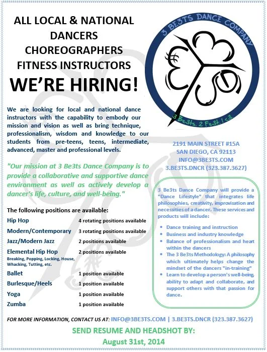 "Our mission at 3 Be3ts Dance Company is to provide a collaborative and supportive dance environment as well as actively develop a dancer's life, culture, and well being."